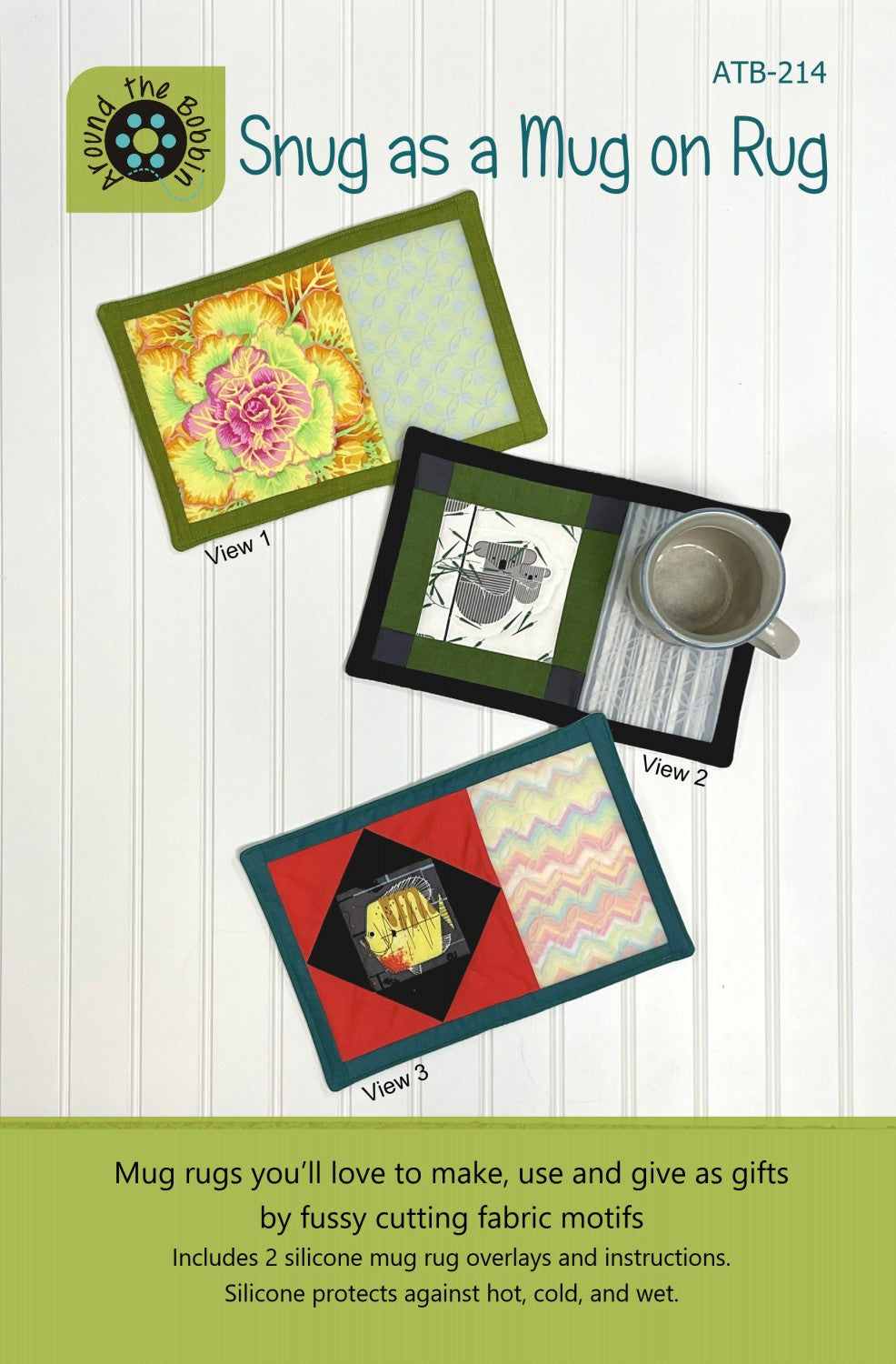 Mug rugs you’ll love to make, use and give as gifts! This pattern kit features a 6 inch block combined with silicone that protects against hot, cold, and wet. Follow the included instructions to feature a fabric motif by fussy cutting a 6-1/2 inch, 4-1/2 inch or 3-1/2 inch square or use an orphan 6-1/2 inch block. Great for scraps. Includes 2 silicone mug rug pieces and instructions for 3 styles of mug rugs. Refills available. Finished mug rugs are approximately 8-1/2 inches x 12 inches.