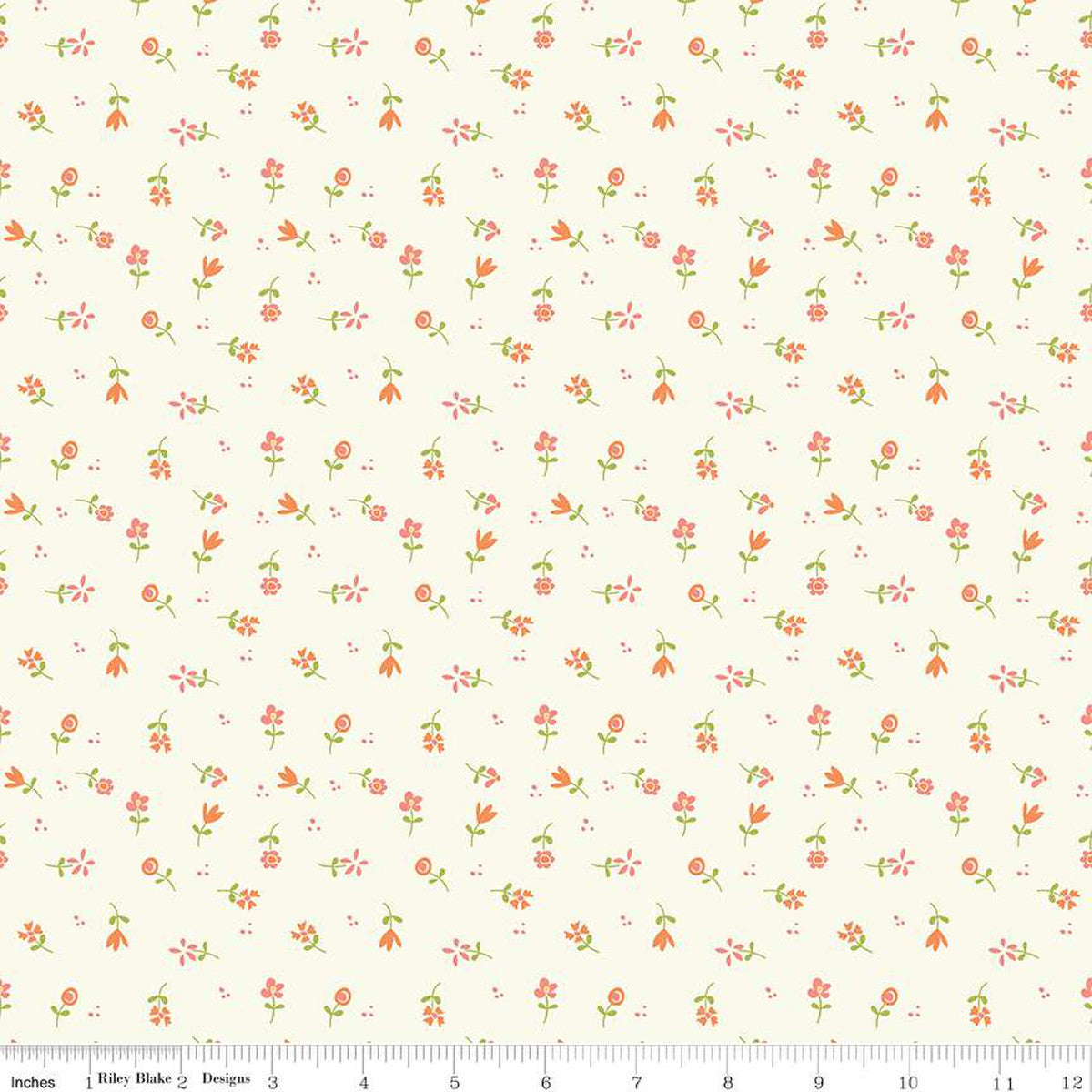 Spring's in Town by Sandy Gervais for Riley Blake Designs is great for quilting, apparel and home decor. This print features large clusters of flowers on a background with scattered blossoms.