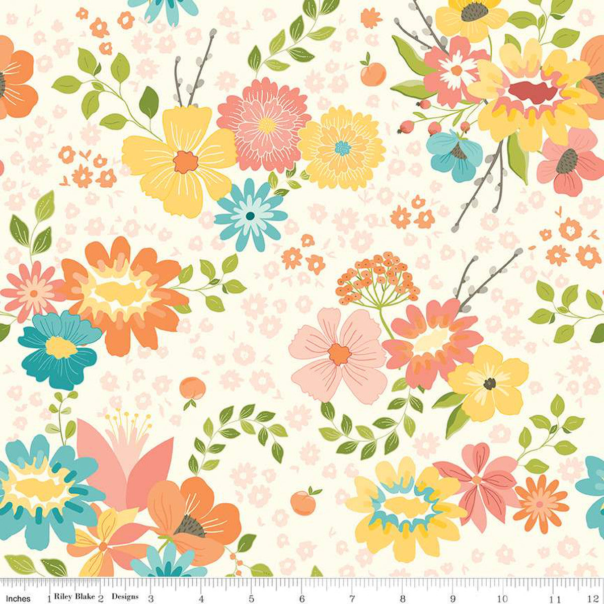 Spring's in Town by Sandy Gervais for Riley Blake Designs is great for quilting, apparel and home decor. This print features large clusters of flowers on a background with scattered blossoms.