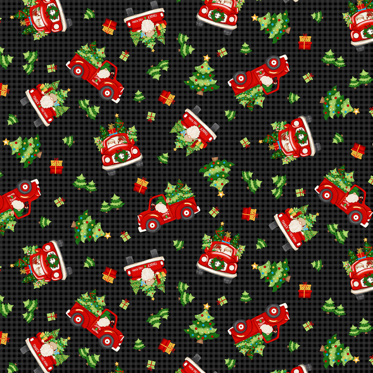 Shelly Comiskey has combined her popular Timber Gnomies with Christmas in this charming collection. There are 15 skus including a 24 inch panel, a 6 block 24 inch repeat, checks, plaids, stripes, snowflakes and monotone trees, as well as Timber Gnomies tossed in red trucks, a patchwork with different scenes, flying reindeer and a 24 inch panel with two Christmas stockings. The classic colors of red and green with accents of tan and black will make this a perfect setting for holiday and home décor.