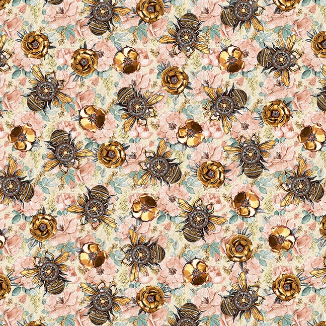Become a part of the steampunk fantasy world with Urban Essence Designs’ new collection, Time Travel. This group features a 24-inch panel with scenes of vintage hats, airships, bicycles and trains. Other patterns include airships, bees and dragonflies, blueprints, time pieces, gears, hats, keys, pipes, skulls and postal stamps. This collection has a color palette of teals, greys, coppers and bronzes. Accents of golds and black complete the retro-futuristic look of this collection.