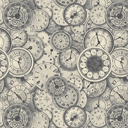 Become a part of the steampunk fantasy world with Urban Essence Designs’ new collection, Time Travel. This group features a 24-inch panel with scenes of vintage hats, airships, bicycles and trains. Other patterns include airships, bees and dragonflies, blueprints, time pieces, gears, hats, keys, pipes, skulls and postal stamps. This collection has a color palette of teals, greys, coppers and bronzes. Accents of golds and black complete the retro-futuristic look of this collection.