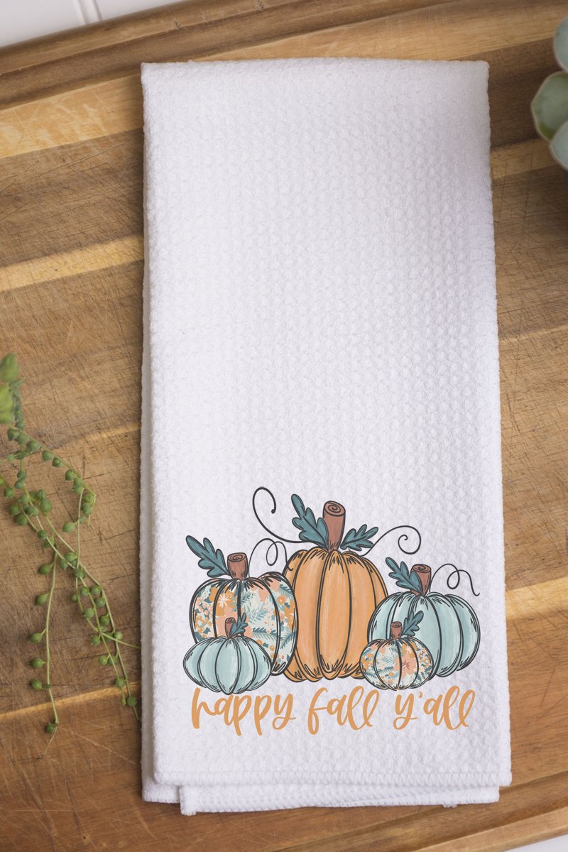 Turquoise Pumpkins Happy Fall Y'all Waffle Kitchen Towel