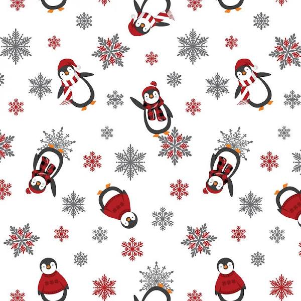 Winter Comfort Flannel - Playful Penguins Flannel White