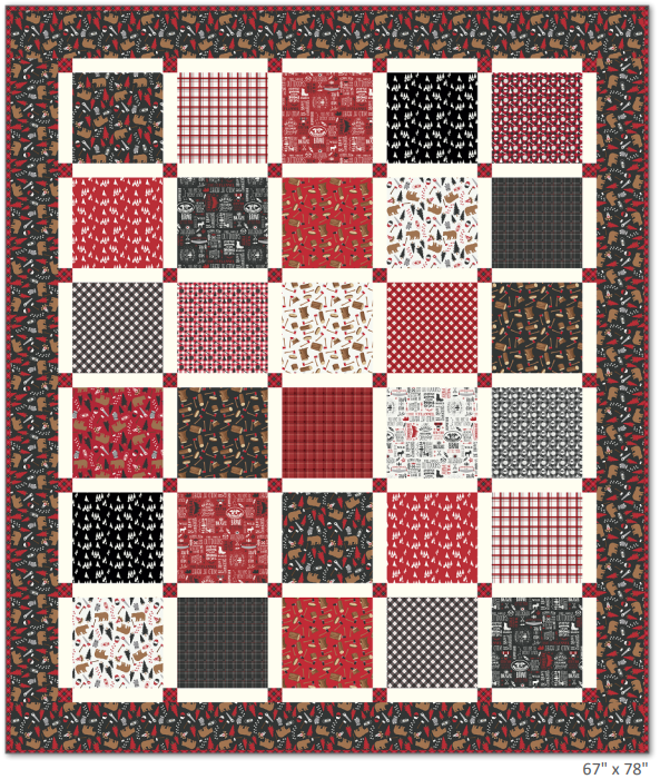 Woodsman by Lori Whitlock for Riley Blake Designs Squared Up Quilt Kit Finishes at 67"x78"