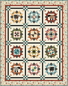 Woolly Whims Block of the Month designed by Jennie Jo Lamb & Alex Imrie of Lamb Farm Designs featuring their debut fabric line for Marcus Fabrics. The saturated hues and warm, comforting tones impart a season-spanning charm to their whimsical folk florals, delicate lines, and dainty vintage patterns. The blocks include classic sampler styles, with Lamb Farm's signature lamb blocks positioned in the four corners. Traditional piecing of the BOM quilt's featured blocks, sashing and cornerstones makes this quilt design suitable for quilters of various skill levels.